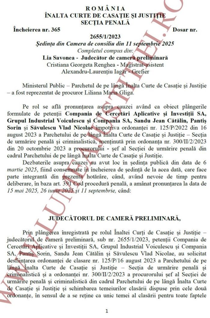 In Incheierea nr. 365 din 11 septembrie 2025, pronuntata in dosarul 2655/1/2023, Savonea precizeaza ca in cazul fostei judecatoare Camelia Bogdan sunt intrunite elementele constitutive ale infractiunii de abuz in serviciu, actiunile acesteia realizate atat in timpul judecarii dosarului „Telepatia”, cat si ulterior pronuntarii deciziei de condamnare a lotului „Telepatia” (in frunte cu omul de afaceri Dan Voiculescu) incalcand dispozitiile legale, de drept penal si procesual penal, cu consecinta prejudicierii inculpatilor, dar si a unor terte persoane. „Incalcarea cu stiinta a normelor de lege aplicabile nu a rezultat dintr-o conduita singulara a acesteia, ci dintr-o serie de acte si masuri judiciare, dar si fapte exterioare actului de judecata, care au scos in evidenta faptul ca nu a fost vorba doar despre o aplicare eronata a legii, intimata urmarind in fapt confiscarea unor bunuri insemnate ca valoare si in numar cat mai mare, de la cei implicati in cauza precum si de la terte persoane, ignorand obligatia de impartialitate, tratament egal si respectarea procesului echitabil”, scrie sefa ICCJ Lia Savonea.