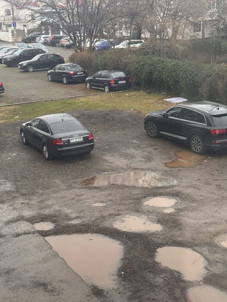 Vă scriu în speranța ca mă puteți ajuta și cu ocazia de a face cunoscută această situație care persistă de ani de zile fără nicio rezolvare. Mă numesc L.M, locuiesc în Ploiești, str. Gheorghe Grigore Cantacuzino 184, bloc 1E, locația cu “pricina”, parcarea blocului care arata ca după război de ani de zile și după toate sesizările făcute la Primăria acestui oraș primim doar răspunsuri evazive, ne spun întotdeauna ca nu au fonduri, însă pentru alte activități cu siguranță se găsesc. Menționez ca suntem aproape de centrul orașului și toate parcările blocurilor sunt amenajate cu pavele, mai puțin aceasta. De curând am aflat ca este posibil ca acest teren din fața blocului nici să nu mai fie proprietatea primăriei ci a altcuiva, însă este spațiul destinat al acestui bloc, dacă ceva ar apărea aici construit ca prin minune, noi nu am avea cum să ieșim din bloc. Pe lângă toate acestea costurile pentru reparațiile mașinilor din cauza gropilor adânci au început să ne depășească de atâta timp. Acest bloc are 27 de apartamente cu poate peste 40 de mașini. Vă las totodată atasate și câteva poze.