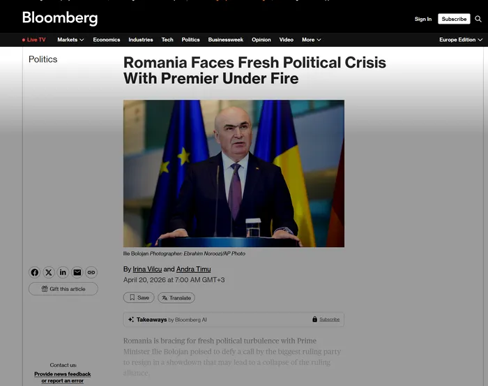 Criza politică de la București a ajuns știre la Bloomberg